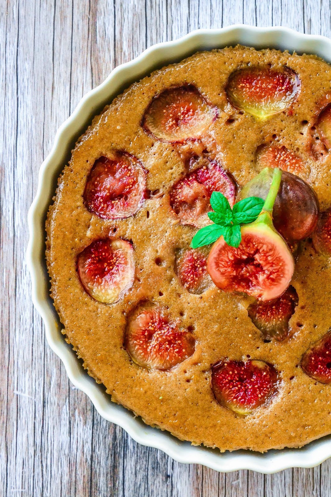 Mix all dry ingredients and set aside. Mix all wet ingredients and add to dry ingredients. Pour batter in a medium size microwave-safe baking dish. Lay sliced figs on top and bake in the microwave for 3-4 minutes.